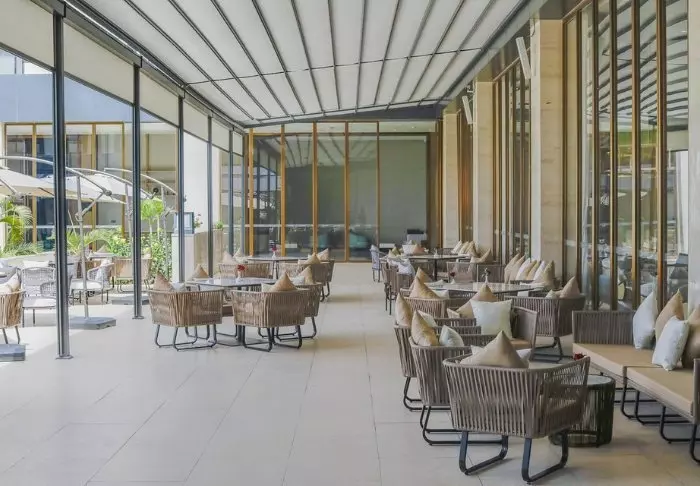 Hotelli on suunniteltu lähes pieneksi kompleksiksi, jonka keskellä on puutarha, jonka toisessa päässä on uima-allas. Täältä löydät aurinkotuolit ja niiden vierestä viehättävän baarin. Hotellissa on myös kolme ravintolaa, oleskelualue ja kuntosali – ja mikä parasta, se on vain 15 minuutin ajomatkan päässä lentokentältä, mikä tekee siitä täydellisen paikan viettää yö matkan alussa tai ennen kotiinpaluuta.