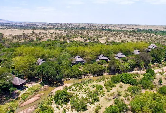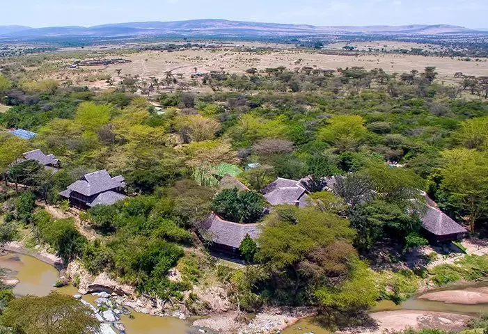 Yhteensä 11 luksusteltasta ja 6 luksusmökistä koostuva Olengoti Eco Safari Camp sijaitsee aivan Talek-joen rannalla.