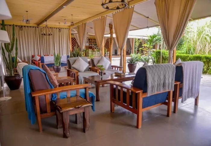 Näköalan lisäksi lodgen vetonauloihin kuuluvat sen viihtyisät yhteiset tilat. Nauti baarissa kylmä juoma, hyppää uima-altaaseen ja nauti samalla hienoista näköaloista Kilimanjarolle!