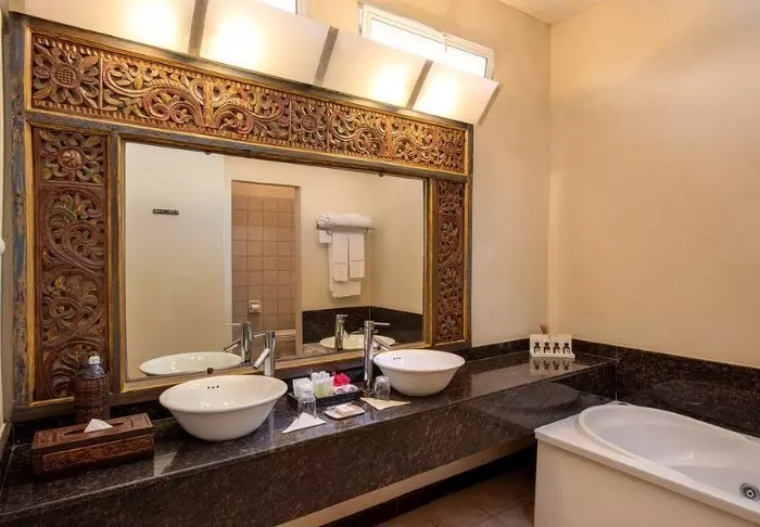 Huoneet sijaitsevat pienissä, kaksikerroksisissa “taloissa”, joissa on kussakin 6 huonetta. Kaikki “talot” on liitetty toisiinsa ja päärakennukseen korotetuilla kävelysilloilla, jotka valaistaan kauniisti illan tullen. Tilavissa huoneissa on kaikissa oma kylpyhuone ja veranta.