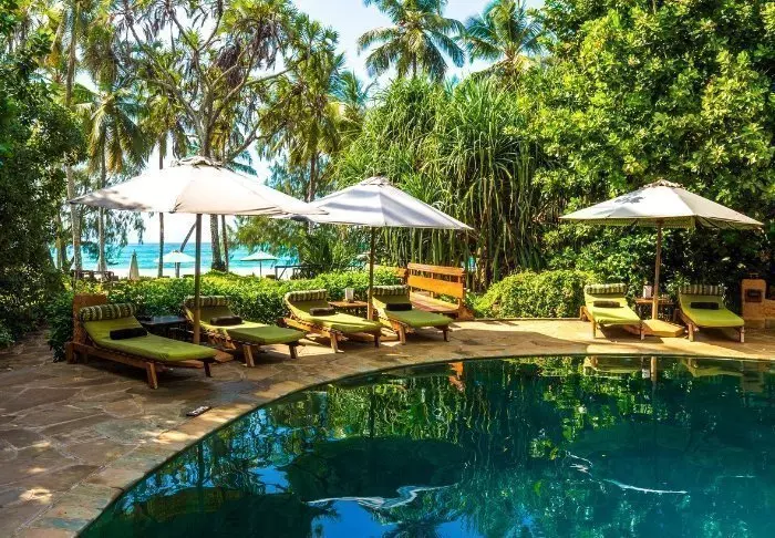 Valtavan trooppisen puutarhan ympäröimä resort sijaitsee aivan valkoisen hiekkarannan vieressä, ja Intian valtameren rauhalliset rantavedet koralleineen ovat vain kivenheiton päässä.
