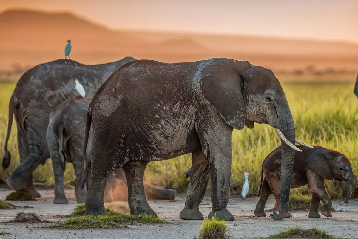 Amboseli tunnetaan suurista norsulaumoistaan ja rikkaasta linnustostaan.