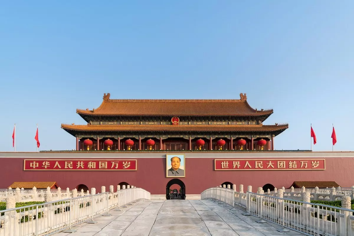 Taivaallisen rauhan aukion pohjoispuolella on sisäänkäynti keisarilliselle palatsialueelle eli Kiellettyyn kaupunkiin.