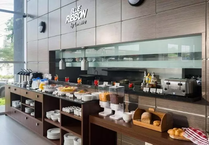 Hotellissa on myös pieni aamiaisravintola.