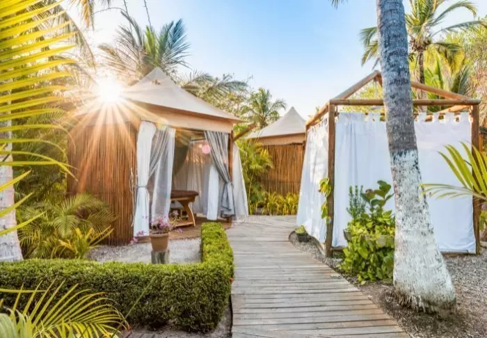 Hotellin pienestä ulkoilma-spasta on mahdollista varata erilaisia hierontoja ja hoitoja.