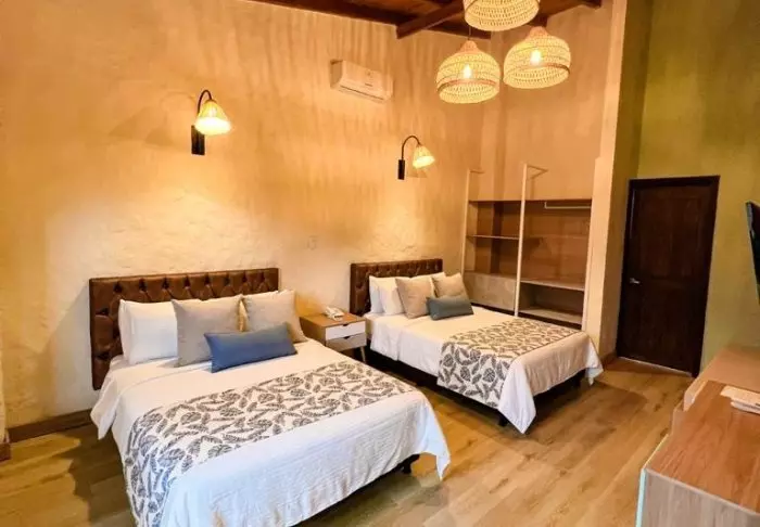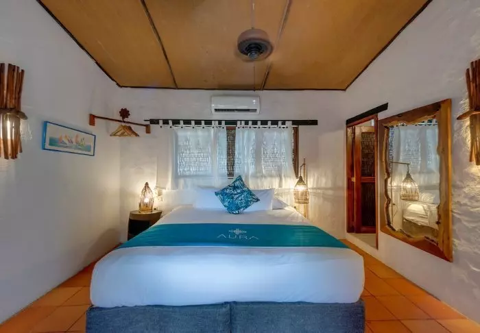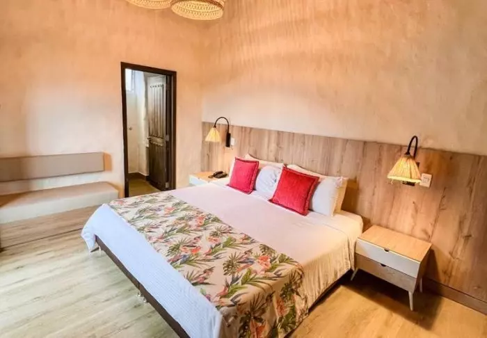 Tilavien huoneiden uniikit, kestävistä materiaaleista valmistetut kalusteet ovat paikallisten käsityöläisten suunnittelemia. Huoneissa on ilmastointi, kattotuuletin, televisio, jääkaappi ja oma kylpyhuone hiustenkuivaajalla. Hotellissa on myös ilmainen WiFi.
