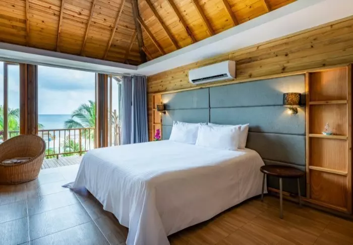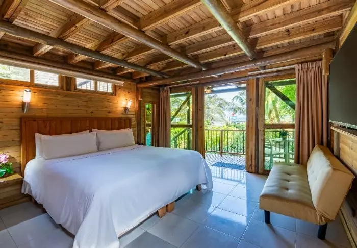 Hotellissa on vain 42 huonetta, joten tiedossa on viihtyisä ja intiimi loma. Kaikki huoneet on rakennettu puusta ja bambusta, ja ne sointuvat kauniisti luontoympäristöönsä. Huoneissa on ilmastointi, WiFi, satelliittitelevisio, minibaari/jääkaappi, tallelokero ja oma kylpyhuone, jossa on ilmaisia kylpytuotteita.