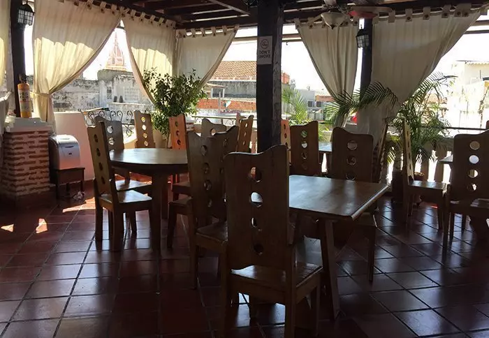 Hotellissa on katettu ulkoilmaravintola, josta avautuu upea näköala Cartagenaan.