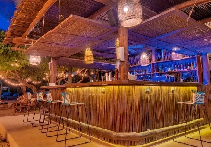 Majoitukseen sisältyvä aamiainen nautitaan seisovasta pöydästä, ja syödessäsi voit upottaa varpaat hiekkaan ja katsella kaunista merinäköalaa. Ravintola on avoinna lounas- ja illallisaikaan, ja listalla on paikallisia erikoisuuksia sekä tietenkin herkullisia kala- ja äyriäisruokia.