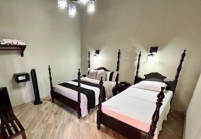 Hotellissa on 10 tilavaa huonetta, jotka on sisustettu klassiseen siirtomaatyyliin puukalusteilla ja valurautavalaisimilla. Kaikissa huoneissa on ilmastointi, WiFi, TV, radio, puhelin, tallelokero, minibaari ja hiustenkuivaaja.