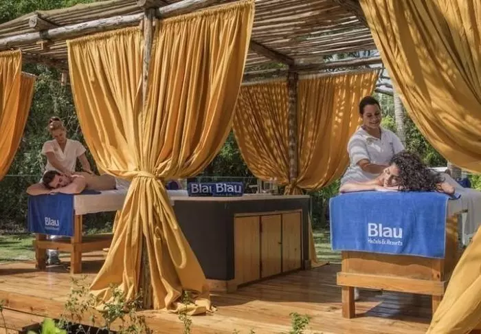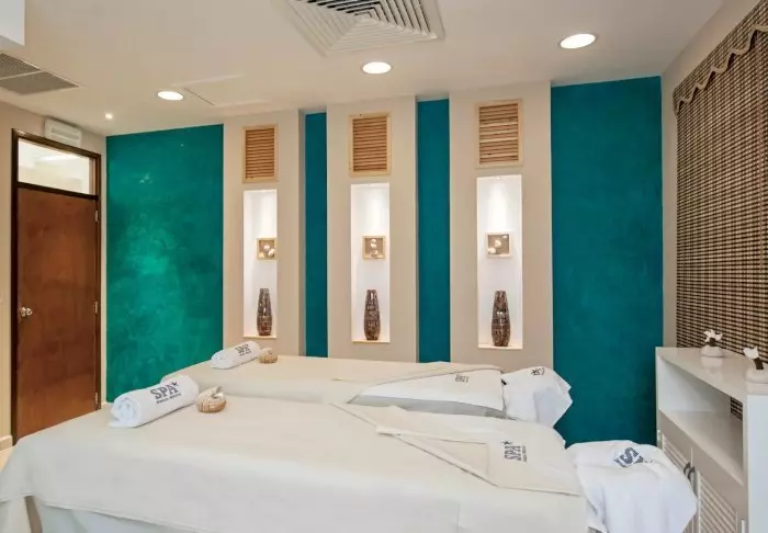 Resortissa on myös kuntokeskus ja viihtyisä spa-alue, josta voit varata rentouttavia hoitoja.