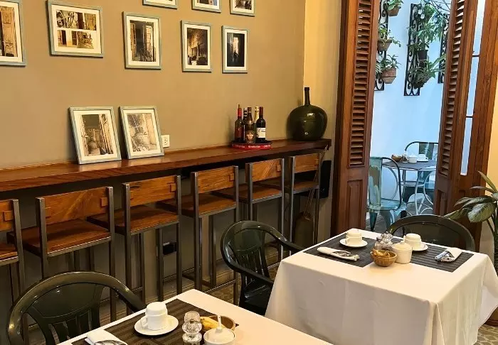 Hotellissa on ravintola ja baari, josta tilattua mojitoa voit siemailla viihtyisän sisäpihan rauhassa. Ravintolassa on istumapaikkoja sisällä ja ulkona, joten aamiaisen, lounaan tai illallisen aikana voit katsella Plaza de la Solidaridadin aukion elämää.
