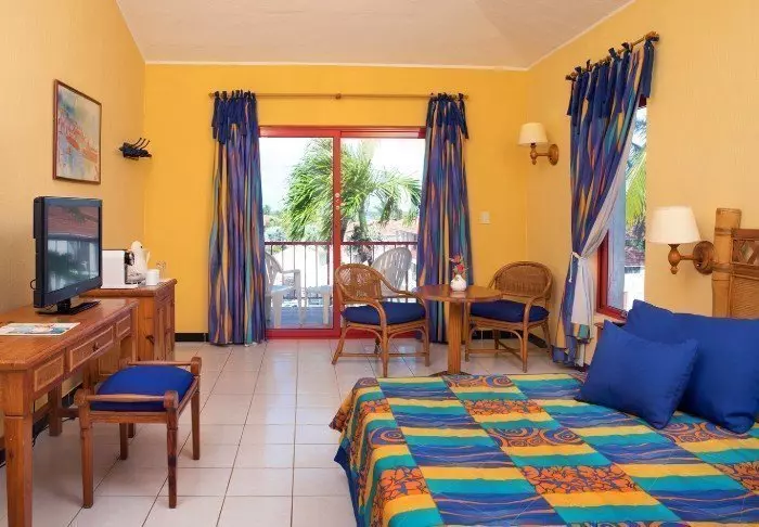 Resortin huoneet ovat moderneja, tilavia ja värikkäästi sisustettuja. Kaikissa huoneissa on ilmastointi, minibaari, tallelokero, TV, WiFi ja oma kylpyhuone, joka on varustettu hiustenkuivaajalla. Huoneessa on myös parveke, jossa voit nauttia rauhallisesta hetkestä lämpimässä trooppisessa tuulessa.