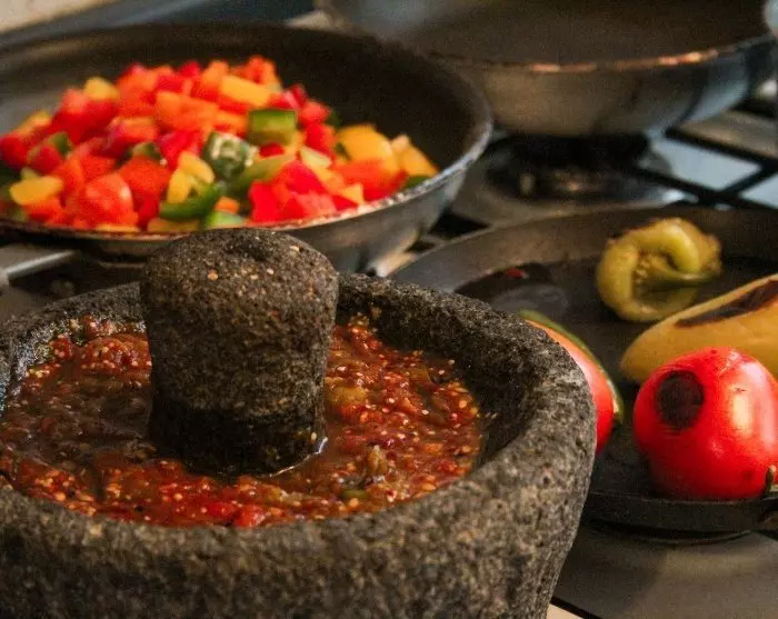 Lopuksi nautit oman kotitekoisen meksikolaisen ateriasi, joka sisältää alkuruoan, pääruoan ja jälkiruoan lisäksi myös perinteisen juoman – joko punaisen hibiskuskukkateen tai virkistävän vihreän “Agua de Chayan”, jolla sanotaan olevan parantavia ominaisuuksia.