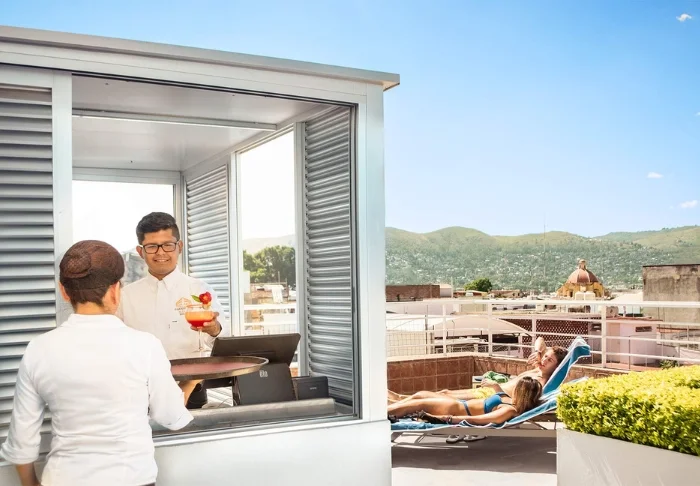 Aamiainen tarjoillaan viihtyisällä ”El Patio” -sisäpihalla. Täältä voit myös tilata lounasta ja illallista ja maistella erilaisia perinteisiä meksikolaisia ruokia. Jos haluat mieluummin aterioida huoneessasi, voit hyödyntää hotellin huonepalvelua.