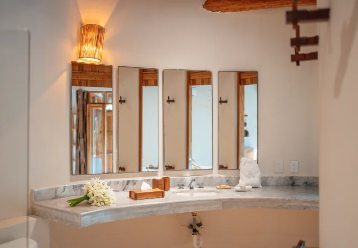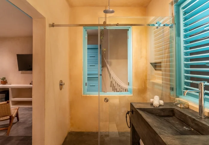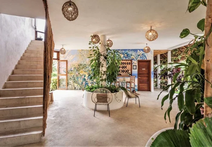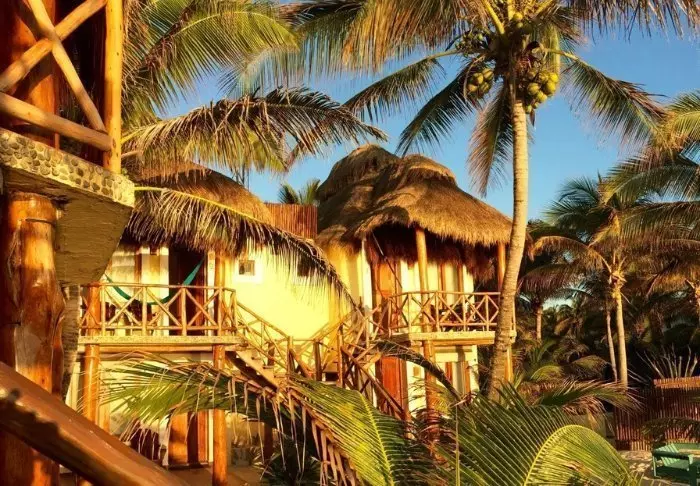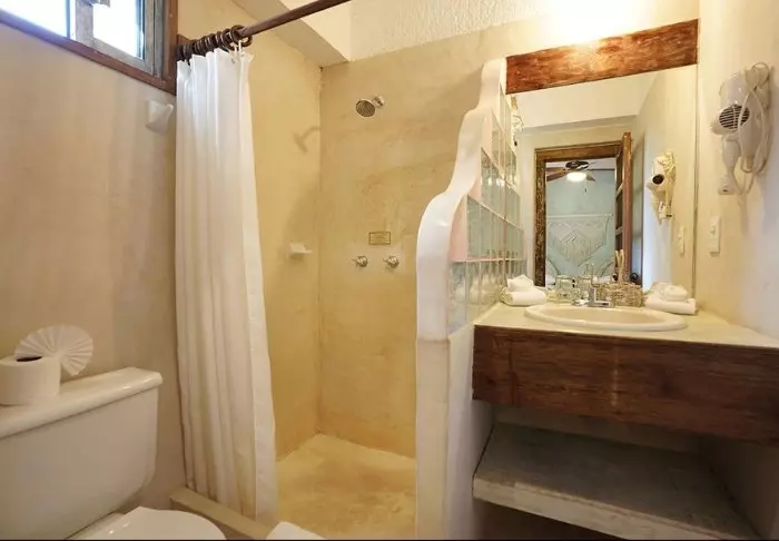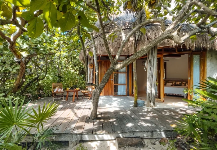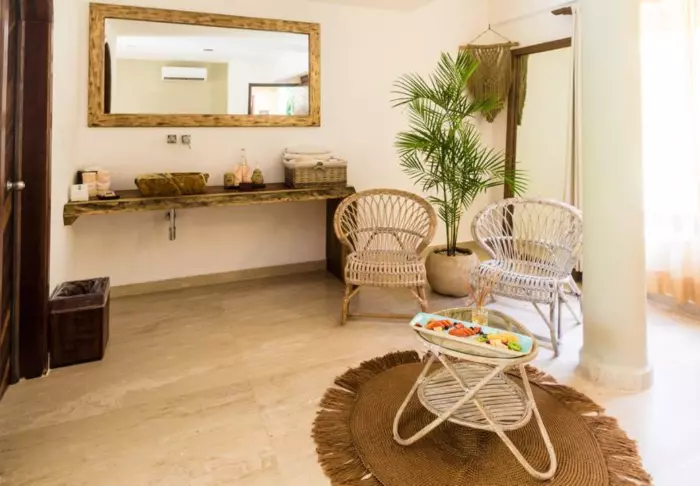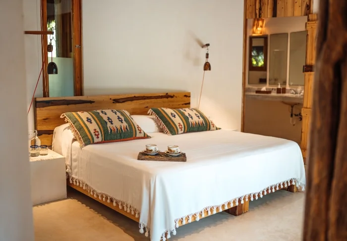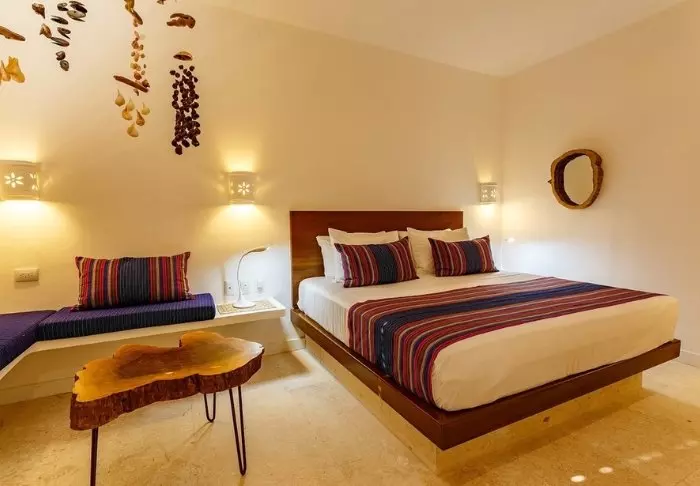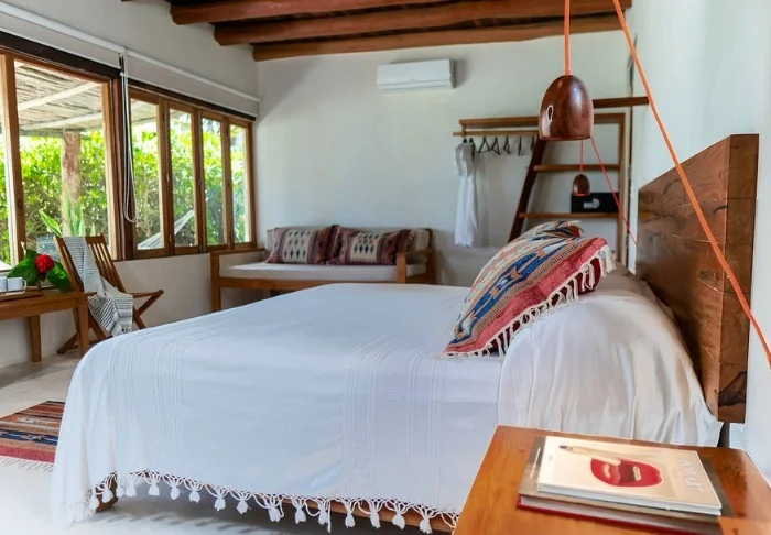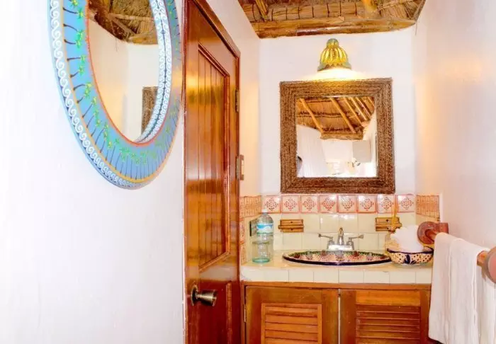 Yövyt viehättävässä, luonnonmateriaaleista valmistetussa majassa, jossa on kuivatuista palmunlehdistä valmistettu katto. Tilavat ja tyylikkäät huoneet on sisustettu harmonisesti vaaleilla väreillä, värikkäillä meksikolaisilla matoilla ja tyynyillä sekä kauniilla tummilla puulattioilla ja -huonekaluilla.