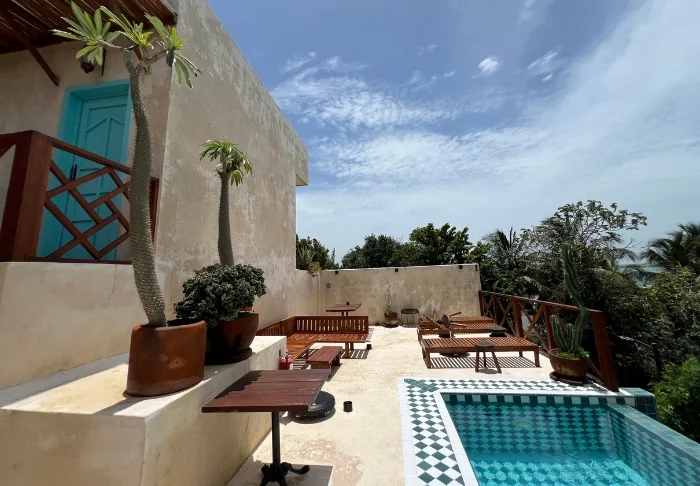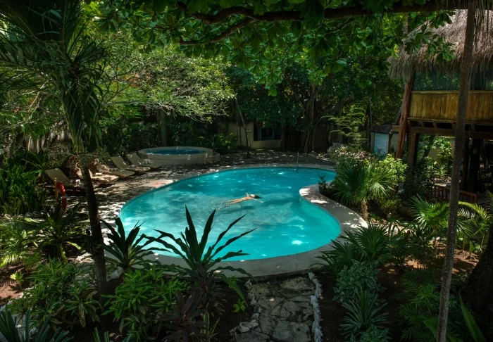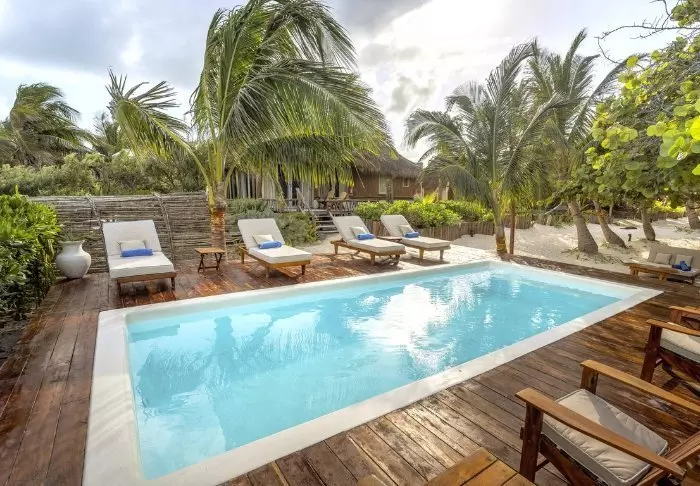 Pääravintolan lisäksi hotellin yhteydessä on uima-allas ja allasbaari, josta voit hakea kylmää juotavaa ilman, että sinun tarvitsee ensin nousta pois uima-altaasta. Aurinkotuoleja on sekä uima-altaan ympärillä että hotellin puutarhassa, jossa voit lukea hyvää kirjaa palmupuun varjossa. Jos ylität pienen hiekkatien, pääset Holboxin kuuluisalle rannalle, jossa voit nauttia kirkkaansinisestä vedestä ja lämpimästä merituulesta. Siellä on myös ilmaisia aurinkotuoleja, ja voit hemmotella itseäsi entistäkin enemmän tilaamalla rannalle ruokaa ja juomia.