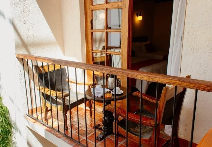 Jos yövyt siirtomaa-aikaisissa huoneissa, huoneessa on myös pieni parveke sekä takka.