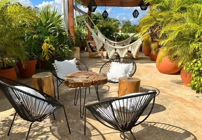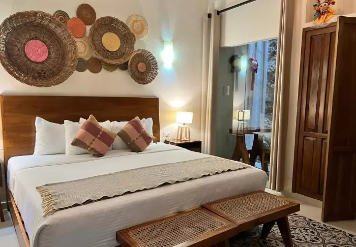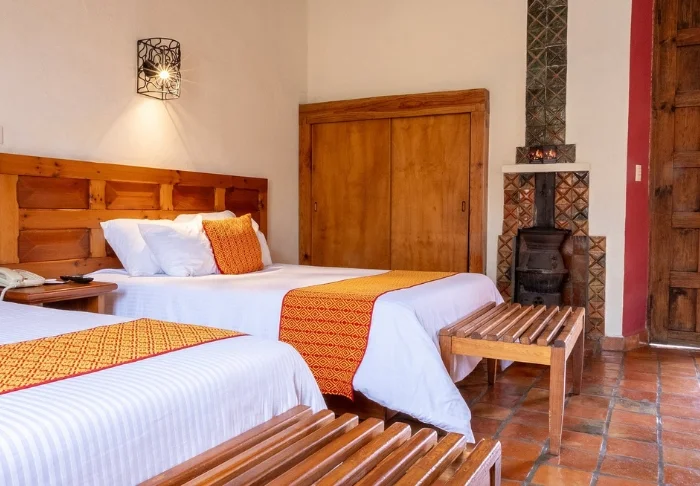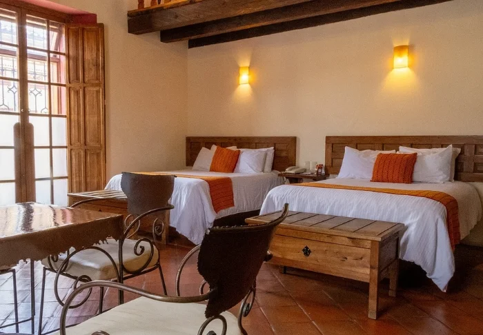 Hotellissa on 33 huonetta, jotka on sisustettu rustiikkiseen meksikolaistyyliin puukalusteilla ja koristeellisilla yksityiskohdilla, jotka tuovat tilaan rennon kotoisaa tunnelmaa.