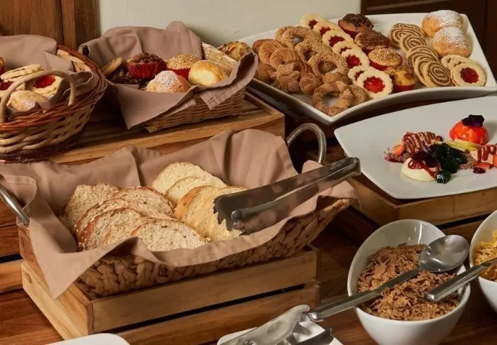 Päivä alkaa mukavasti hotellin ruokasalissa majoitukseen sisältyvällä aamiaisella, joka koostuu kansainvälisen keittiön ruokalajeista, kuten munakkaista, pannukakuista, smoothieista, tuoremehuista ja muista herkuista.