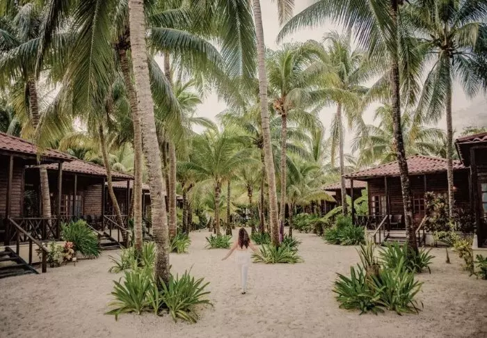 Intiimin retriitin kauniit huoneet ovat kauttaaltaan tyylikkäästi sisustettuja, ja niissä on ilmastointi, kattotuuletin, Wi-Fi ja tallelokero. Huoneita on yhteensä vain yhdeksän, joten jokaisella huoneella on oma viihtyisä terassinsa. Täällä voit nukahtaa kuunnellen aaltojen kuohuntaa. Kun heräät, voit siirtyä riippumattoon nauttimaan auringonnoususta, joka maalaa taivaan kirkkaan abstrakteilla väreillä.