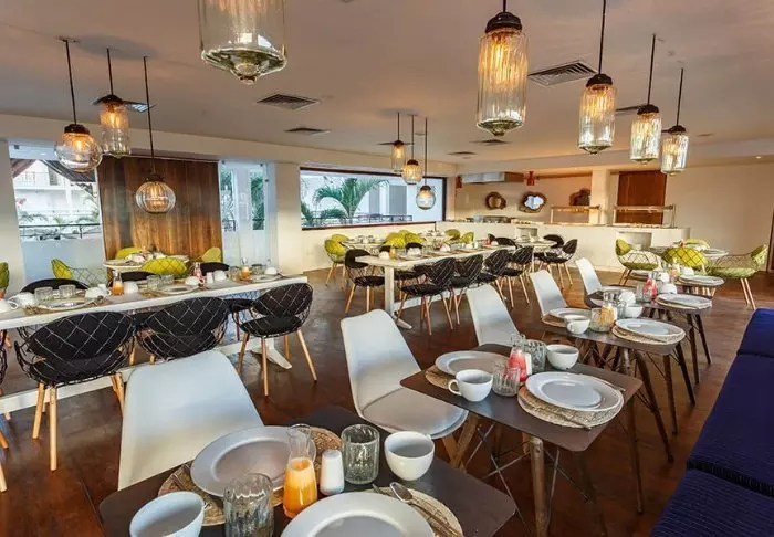 Hotellin ravintola sijaitsee rannalla. Täällä voit nauttia herkullisen aterian Karibianmeren laineiden liplatusta kuunnellen.