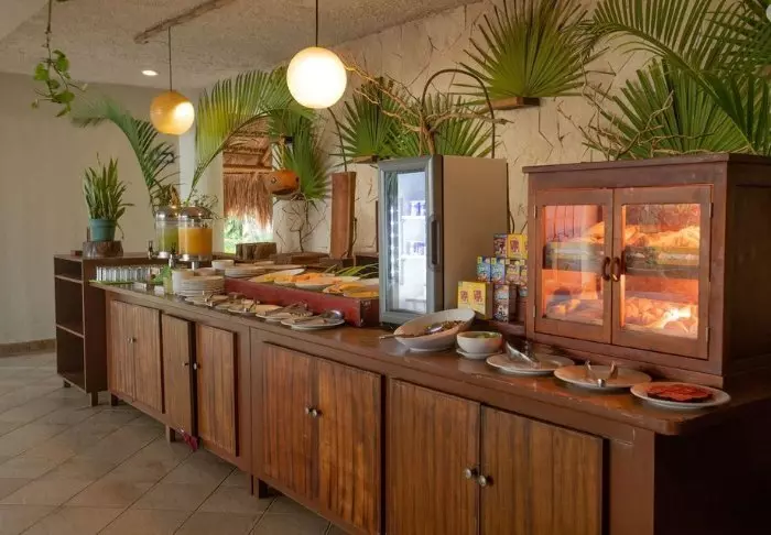 Hotellissa on sekä rantabaari, jossa voit nauttia kylmiä juomia tai välipaloja, että meksikolainen ulkoilmaravintola, jossa voit istua varpaat hiekassa ja nauttia merinäköaloista. Ravintolassa tarjoillaan myös majoitukseen sisältyvä aamiainen, ja myöhemmin päivällä ruokalistalla on lounasannoksia. Huippusesongin aikaan ravintolassa voi nauttia myös illallista. Ilta-aterian voit syödä myös jossakin lähellä sijaitsevista ravintoloista, joiden ruokalistoilla on mereneläviä, meksikolaisia erikoisuuksia ja kansainvälisiä ruokia. Voit myös suunnata Tulumin kaupunkiin, jossa on laajempi valikoima ravintoloita ja baareja.