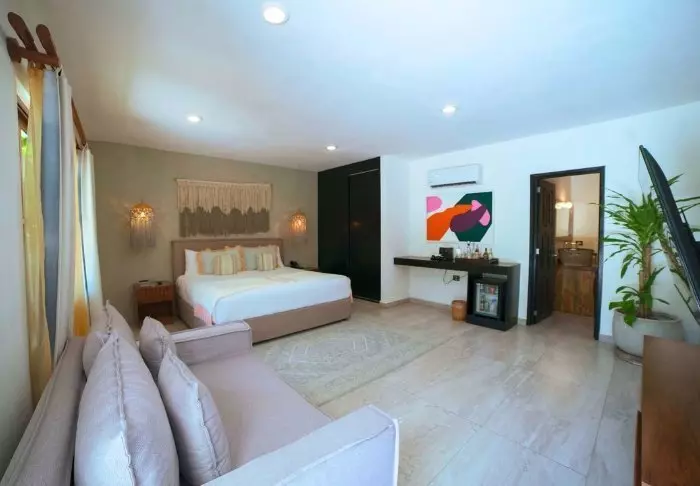 Hotellin huoneet on sisustettu meksikolaiseen tyyliin luonnonmateriaaleilla ja ripauksella värejä. Kaikissa huoneissa on ilmastointi, kattotuuletin, tallelokero ja oma pieni terassi.
