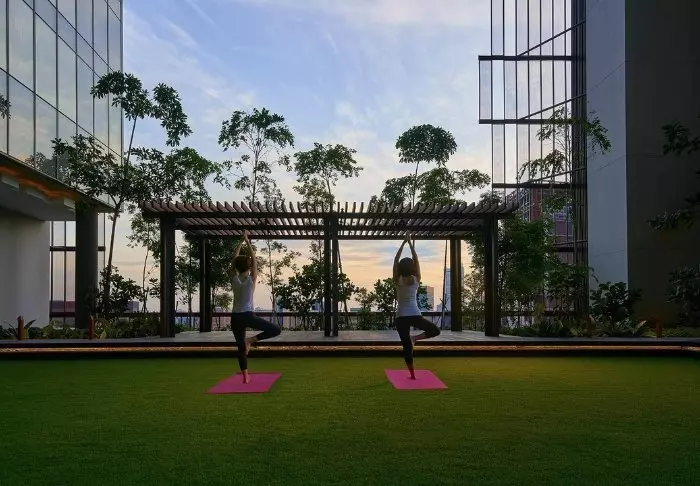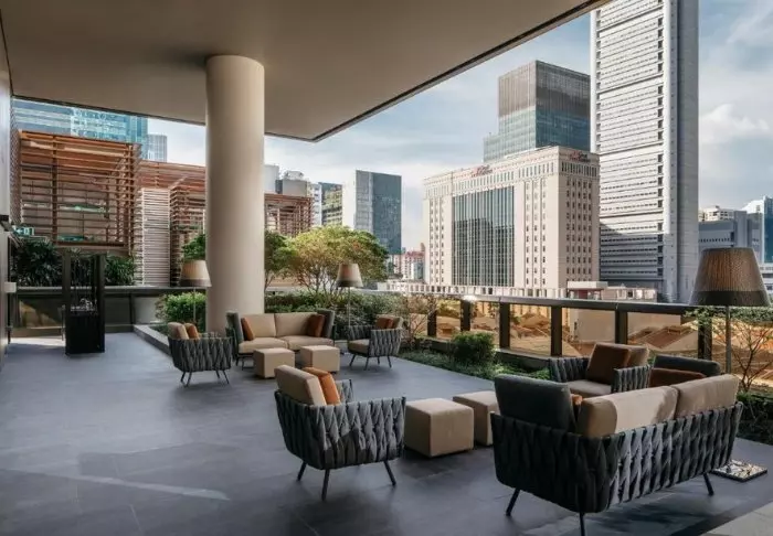 Myös rakennuksen sisäpuolella voi nähdä, kuinka upeasti täällä on onnistuttu tuomaan vehreä luonto keskelle suurkaupunkia. Hotellin ylimmässä kerroksessa on kattoterassi, joka on koristeltu 21 erilaisella köynnöskasvilla. Uima-altaita on kaksi, ja niiden ympärillä on mukavasti tilaa loikoilla aurinkotuolissa. Pari kerrosta alempana on toinen terassi, joka muistuttaa rehevää keidasta. Ota mukaan hyvä kirja ja istuudu rentoutumaan loungealueelle – tai pukeudu treenikamppeisiin ja tee pari harjoitusta vihreällä nurmikolla nauttien samalla upeista näkymistä. Voit myös käyttää kuntosalia, joka on avoinna 24 tuntia vuorokaudessa.