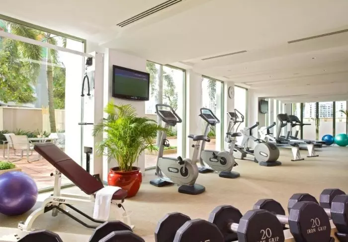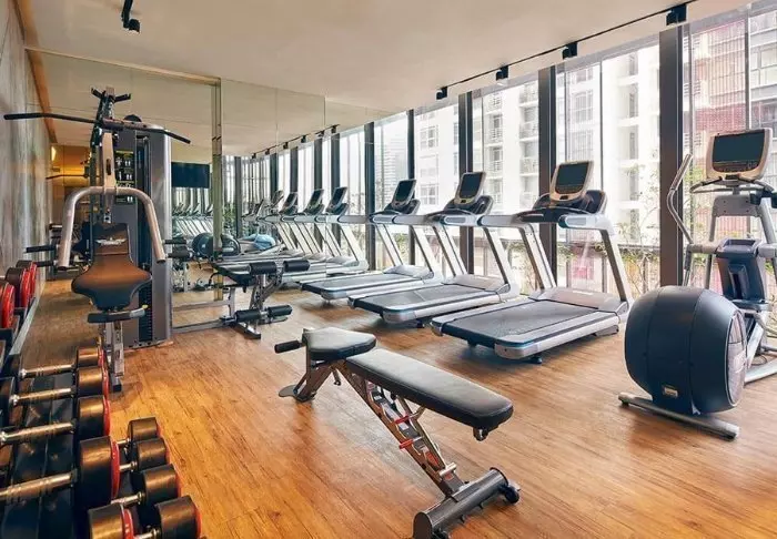 Hotellin omassa Sky Gym -kuntokeskuksessa voit treenata ja nauttia samalla upeista näköaloista, sillä kuntosali sijaitsee rakennuksen ylimmissä kerroksissa.