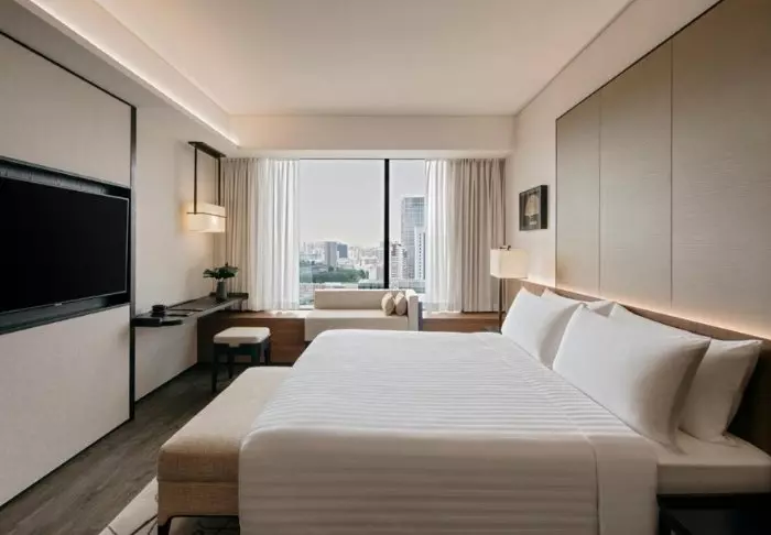Elegantti ja viihtyisä tunnelma vallitsee myös hotellin 386 huoneessa. Tyylikkäästi sisustetut huoneet ovat mukavia, ja niistä avautuu hieno näköala Singaporen vaikuttavaan siluettiin. Huoneet ovat kooltaan vähintään 32 m2 , ja niissä on kaikki tarvittavat mukavuudet, kuten WiFi, ilmastointi, tallelokero, minibaari, tarvikkeet kahvin ja teen valmistukseen, silitysrauta ja silityslauta. Tilavassa kylpyhuoneessa on suihku tai kylpyamme, kylpytuotteita ja hiustenkuivaaja.