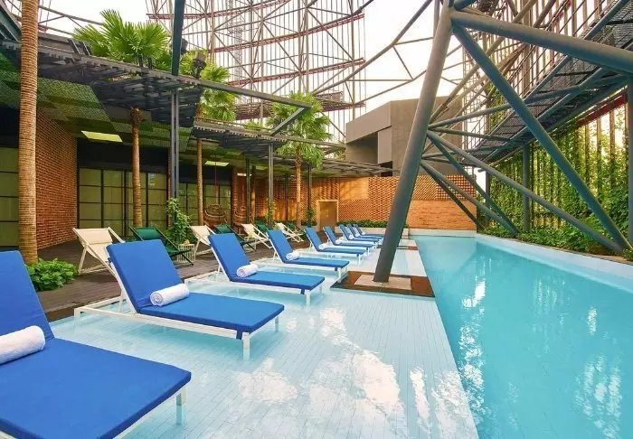 Ylimmässä kerroksessa sijaitsee hotellin Sky Pool, josta avautuu uskomattoman upea näköala yli koko kaupungin. Valitse mukava aurinkotuoli altaan ääreltä ja uppoudu hyvään kirjaan – tai nauti upeasta auringonlaskusta pitkän ja tapahtumarikkaan päivän päätteeksi.