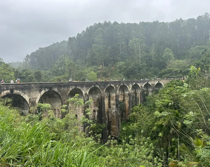 Laskeudu samaa samaa reittiä alas rehevien maisemien halki, minkä jälkeen nouset autoon, joka vie sinut kohti yhtä Sri Lankan kuvatuimmista maamerkeistä: kaunista Nine Arch Bridge –silta. Silta on rakennettu Britannian siirtomaa-aikana ilman rautaa tai terästä. Autolta laskeudut loivasti viettävää polkua pitkin, ja matkan varrella saatat kohdata paikallisia, jotka elävät teeviljelmien ympäröimällä alueella. Polun päässä odottaa Nine Arch Bridge, joka on todella vaikuttava näky 30 metrin korkeudellaan keskellä vehreää maisemaa.