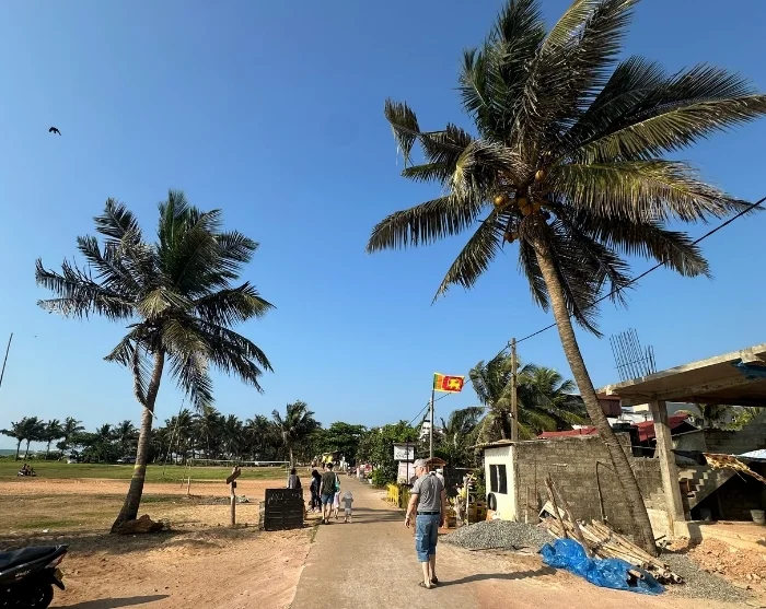 Lentokentältä matka jatkuu kohti Negomboa, eloisaa rannikkokaupunkia, jonne on vain puolen tunnin ajomatka. Edessä avautuu leveä, kullankeltainen hiekkaranta, jonka palmut heiluvat lempeässä tuulessa ja värikkäät kalastajaveneet lipuvat rauhallisesti rantaan.