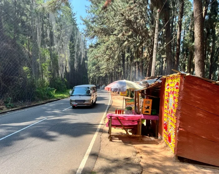 Ensimmäinen pysähdys on Ravana Falls, yksi Sri Lankan leveimmistä ja vaikuttavimmista vesiputouksista. Vesi syöksyy täällä kallioiden läpi 25 metriä alas, pauhaten niin voimakkaasti, että roiskeet tuntuvat melkein ilmassa. Tarun mukaan demonikuningas Ravana asui aikoinaan täällä ja piti prinsessa Sithaa piilotettuna luolassa vesiputouksen takana – tarina, joka herättää mielikuvituksen eloon, kun katselet kuohuvia putouksia.