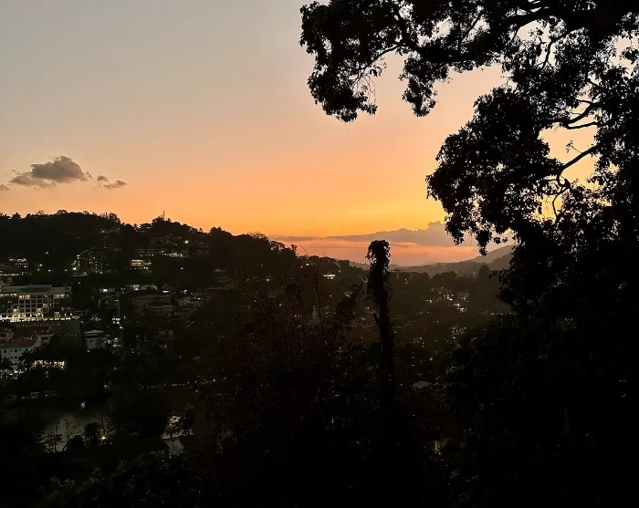 Tämän jälkeen voitte istahtaa yhteen kaupungin rinneravintoloista, joista avautuu upea näkymä laaksoon ja ympäröiville vuorille. Nauttikaa illallisesta, samalla kun Kandy kylpee kauniissa iltavalossa silmienne edessä.