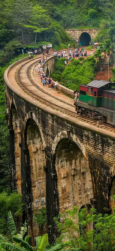 Paluu alas kulkee samaa polkua vehreiden maisemien läpi, jonka jälkeen siirrytte autolla kohti Sri Lankan ehkä kuvatuinta maamerkkiä: upeaa Nine Arch Bridge -siltaa, joka rakennettiin brittiläisen siirtomaa-ajan aikana ilman rautaa tai terästä.
