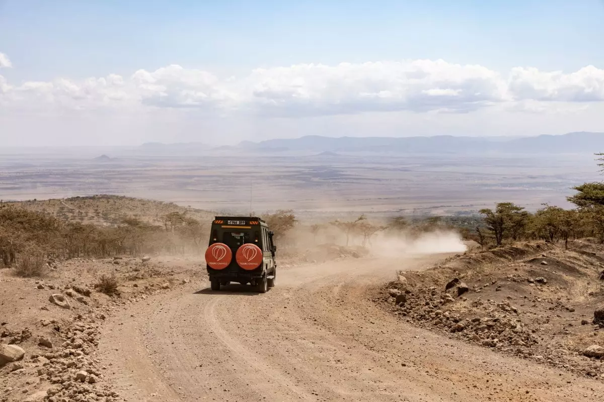 Seuraavien tuntien ajan sinun tarvitsee vain rentoutua ja nauttia Afrikan lumoavista maisemista. Ja auton ikkunasta näkyvät maisemat todellakin ovat parasta Afrikkaa! Ohi vilistävät pienet kylät markkinoineen, karjaansa paimentavat masait ja värikkäisiin mekkoihin pukeutuneet naiset.