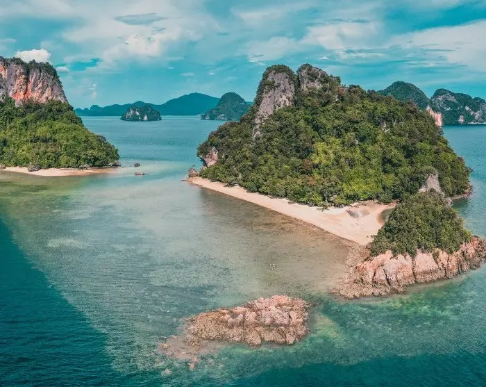 Seuraavaksi nouset jälleen pitkähäntäveneen kyytiin ja otat kurssin kohti pieniä, idyllisiä Koh Lao La Ding- ja Pak Bia -saaria. Täällä voit snorklata ja tutustua värikkääseen merielämään. Laskuveden aikaan voit nähdä hiekkasärkän ilmestyvän pinnan alta ja yhdistävän Pak Bian naapurisaareen Koh Lao La Ding Islandiin, joka tunnetaan myös nimellä Paratiisisaari. Saaren sijainti lähellä Phang Nga -lahtea tekee sitä ympäröivästä vedestä pikemminkin smaragdinväristä kuin turkoosia ja hiekasta enemmän kultaista kuin valkoista.
