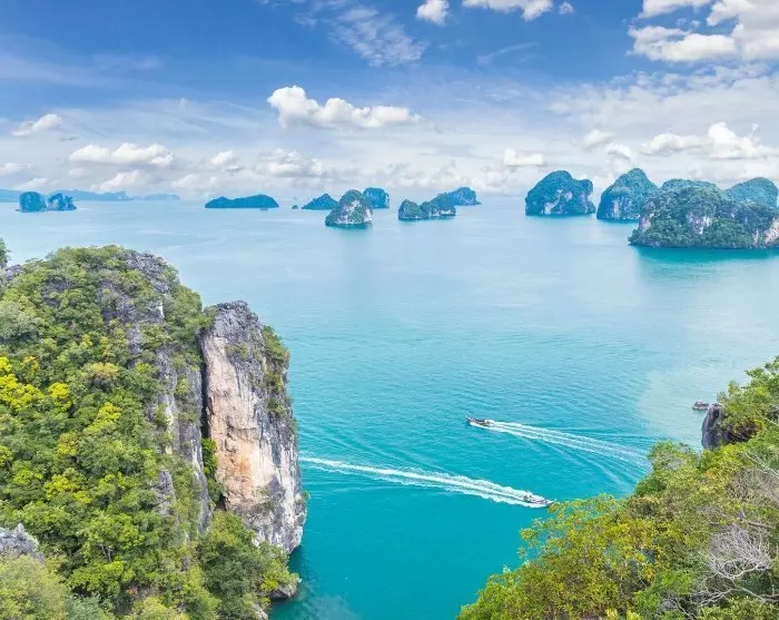 Sinut noudetaan hotelliltasi ja kuljetetaan Chong Lard -satamaan, josta lähdet paikallisen pitkähäntäveneen kyydissä jännittävälle saarihyppelylle.