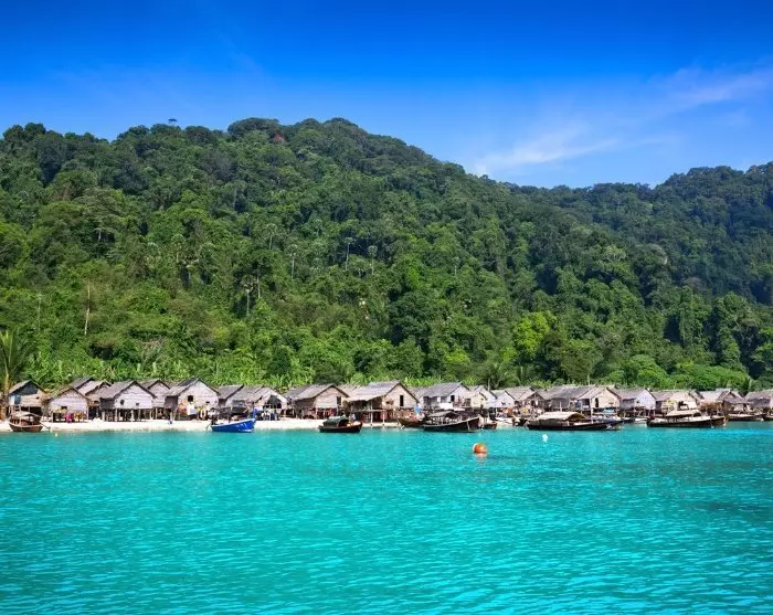Snorklauksen jälkeen palataan veneeseen ja ajetaan lähellä sijaitsevaan Mokenin kylään, missä on vuorossa mielenkiintoinen kulttuurivierailu. Moken on nimittäin koti niin kutsutuille merimustalaisille, jotka asuvat paalujen varaan rakennetuissa puutaloissa ja ovat tunnettuja vaikuttavista vapaasukellustaidoistaan.