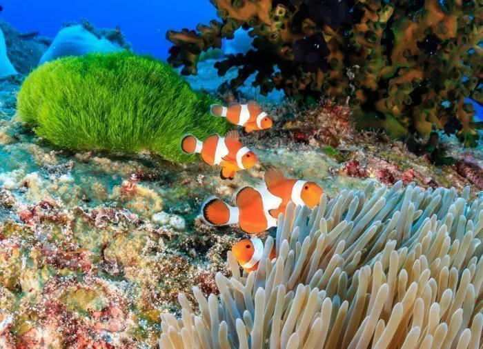 Seuraavaksi palaat takaisin veneelle, joka suuntaa kohti päivän ensimmäistä snorklauskohdetta. Pukeudut maskiin, snorkkeliin ja räpylöihin ja hyppäät veteen. Pinnan alla sinua odottavat uskomattoman kauniit korallit ja värikkäät kalat – hyvällä onnella voit nähdä vaikka Nemon.