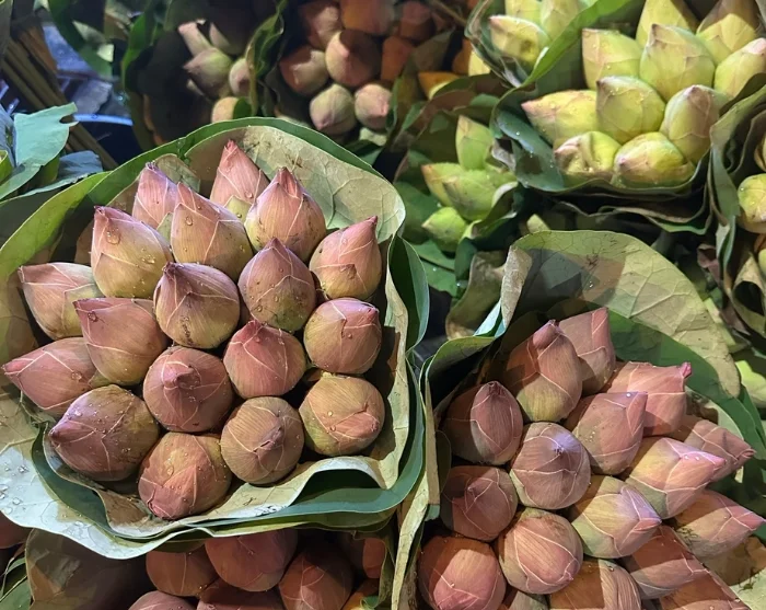 Seuraavaksi vierailet Thaimaan suurimmalla kukkatorilla Pak Klong Talatilla, joka on avoinna vain iltaisin. Täällä kävelet kukkakojujen lomassa ja saat mahdollisuuden taittaa oman lootuskukkasi, jolla on suuri merkitys erityisesti buddhalaisille.