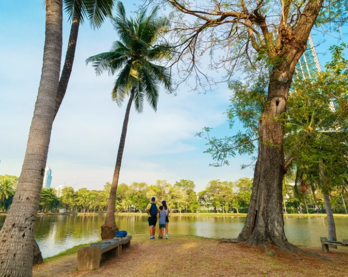 Bangkokin trooppisessa ilmastossa ja liikenteen metelissä voi joskus kaivata pientä paussia rauhallisemmassa ja vehreämmässä maisemassa. Silloin kannattaa suunnata joko Lumpinin tai Benjakitin puistoon. Joen länsipuolella seikkailijaa odottaa erilainen Bangkok, jossa pilvenpiirtäjiä tai tööttäileviä tuktukeja ei näy. Täältä löydät perinteikkään Bangkokin, jonka kanavalabyrintin varrella seisovat talot on rakennettu paalujen varaan ja postikin kulkee veneellä.