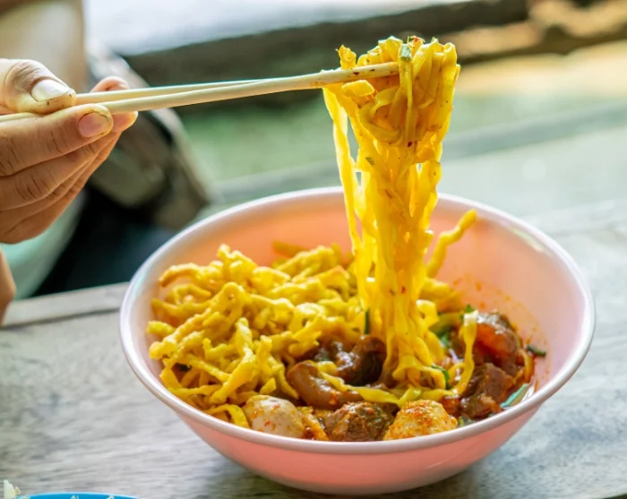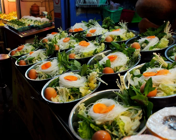 Tämän jälkeen ensimmäinen pysäkki on suosittu pad thai -ravintola, joka on saanut Bib Gourmand -tunnustuksen. Bib Gourmand on Michelin-oppaan myöntämä kunnianosoitus ravintoloille, jotka tarjoavat hyvin valmistettua ruokaa kohtuulliseen hintaan. Täällä sinulle tarjoillaan maukasta kansallisruokaa banaaninlehdiltä, ja pääset jopa keittiöön katsomaan, miten sitä valmistetaan.