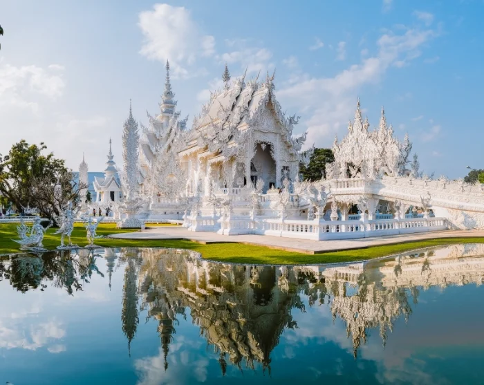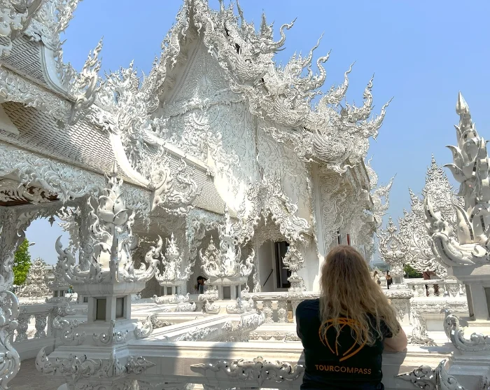 Matkalla Chiang Raihin vierailet vaikuttavassa Rong Khun -temppelissä, joka tunnetaan paremmin nimellä Valkoinen temppeli. Tämä moderni mestariteos (1997) on paikallisen taiteilijan Chalermchai Kositpipatin käsialaa, ja se eroaa selvästi Thaimaan perinteisistä temppeleistä. Sen uniikki valko-hopeinen julkisivu symboloi puhtautta ja valaistumista, ja lukuisat yksityiskohdat sisältävät sekä uskonnollisia että yllättäviä moderneja viittauksia.