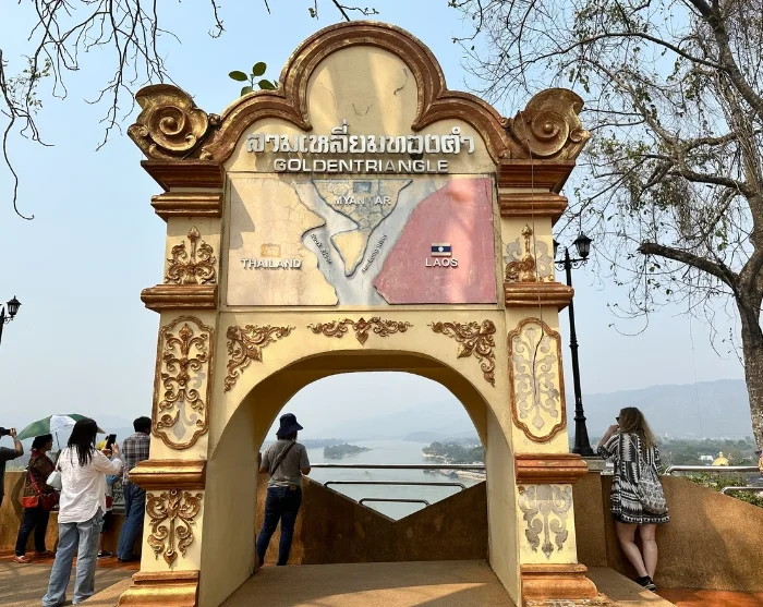 Tämän jälkeen matka jatkuu hieman pidemmälle pohjoiseen kohti Kultaista kolmiota, joka ulottuu Thaimaasta Laosiin ja Myanmariin. Kultainen kolmio tunnettiin ennen oopiumkaupan keskuksena, mutta alue on käynyt läpi melkoisen muodonmuutoksen, ja tänä päivänä paikalliset etniset vähemmistöt viljelevät oopiumin sijasta riisiä, kahvia ja muita viljelykasveja sen vehreissä vuoristomaisemissa. Retken kohokohta on näköalapaikka, josta voit nähdä kolme maata – Thaimaan, Myanmarin ja Laosin – samalla kertaa.