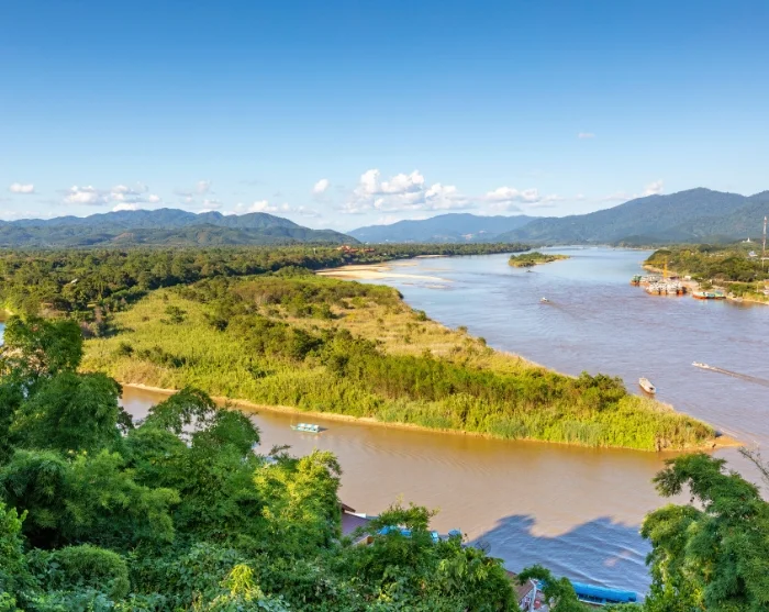 Lounaan jälkeen on vuorossa rentouttava veneretki Mekongjoella, jonka toisella rannalla voit nähdä Laosin ja toisella rannalla Myanmarin.