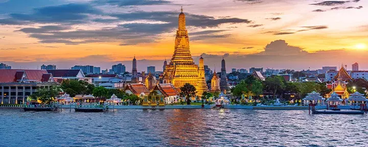Matka alkaa maan vilkkaasta pääkaupungista Bangkokista, jossa sinua odottavat herkulliset katukeittiöt, skybaarien panoraamanäköalat ja vaikuttavat kontrastit. Viemme sinut tuktukin kyydissä streetfood-kierrokselle, joka tarjoaa ainutlaatuisen tilaisuuden tutustua kaupungin jännittäviin ruokapaikkoihin ja paikalliseen elämänmenoon. Ilta huipentuu Chao Phraya -joen rannalla sijaitsevaan viihtyisään kattobaariin, josta on hieno näköala valaistulle Wat Arun -temppelille.