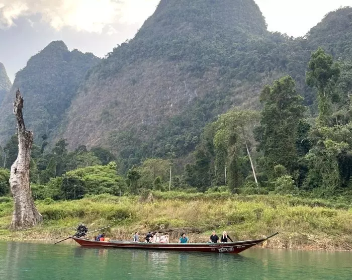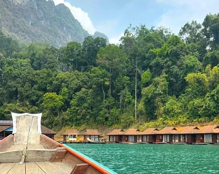 Seuraavaksi sinut kuljetetaan Ratchabrapha-laiturille vaikuttavan padon läheisyyteen. Täällä nouset pitkähäntäveneeseen ja purjehdit Cheow Lan -järvelle, missä ikoniset kalkkikivimaisemat odottavat.